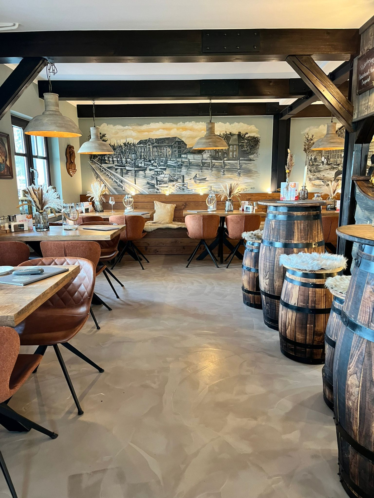 „Ich habe oft schon darüber nachgedacht und insgeheim Pläne gemacht. Mir war jedoch immer bewusst, dass unsere Gäste es so mochten, wie es war“, erzählt sie. Dennoch wurde nach knapp 30 Jahren eine Renovierung in Angriff genommen, gründlich, aber auch behutsam. Denn der Charme des Hafenblicks und der maritime Charakter des Lokals ist durch die Baumaßnahmen nicht verloren gegangen.