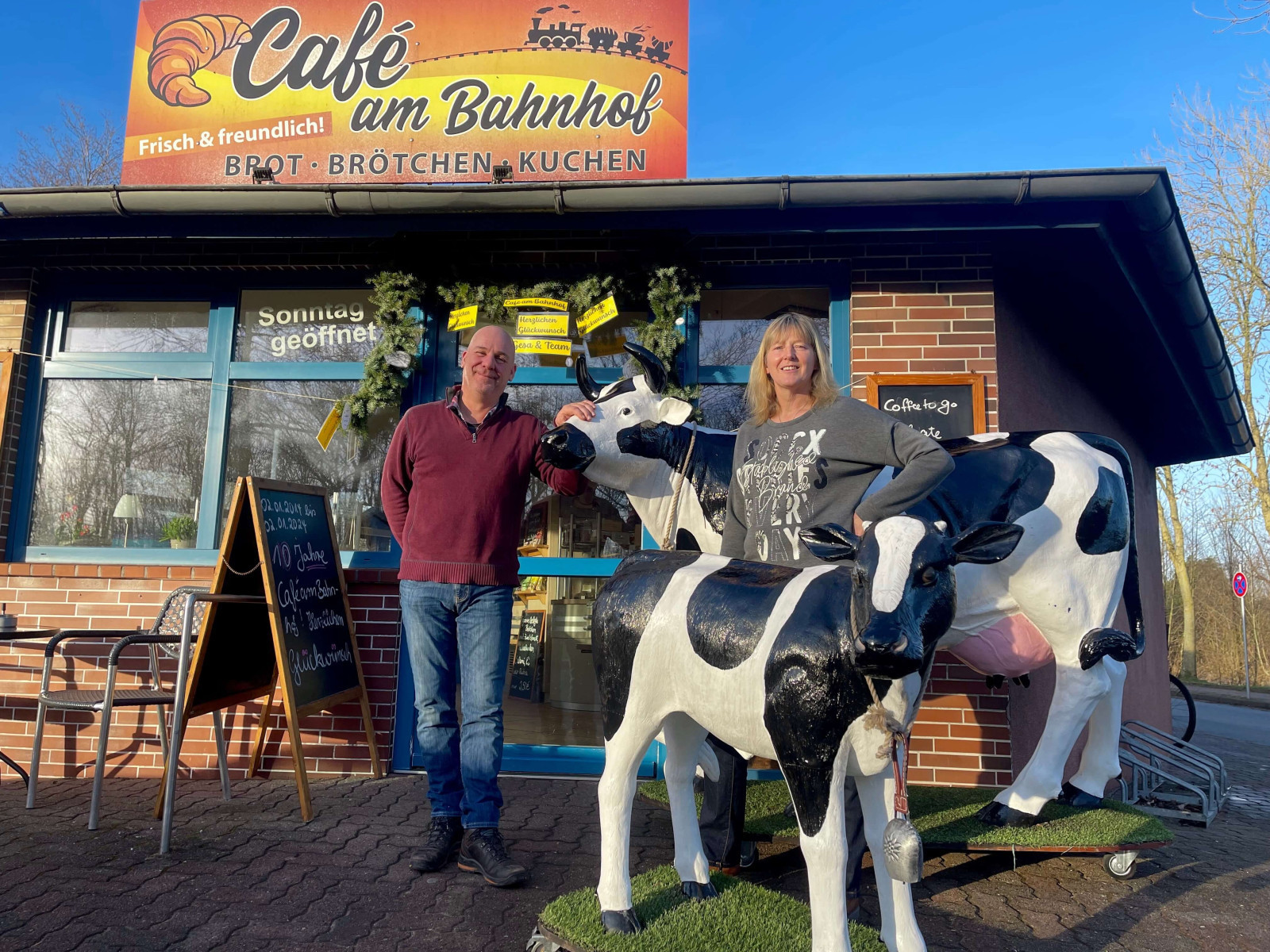 Die 55-Jährige ist in Koldenbüttel aufgewachsen und lebt jetzt mit ihrem Ehemann Sven (53) in Friedrichstadt. In ihrem Café am Rand von Friedrichstadt, direkt an der alten B5, ist immer was los. So schauen die Bahnreisenden vorbei und nehmen sich eine Erfrischung mit, etwas zum Lesen oder auch einen kleinen Snack.